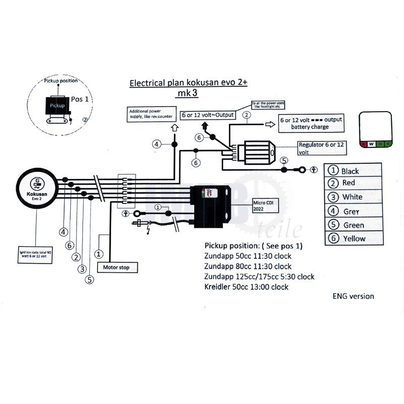 - Achtung: Teile wie Schwungrad und CDI Unit sind nicht mit anderen EVO 2 Zündungen austauschbar.